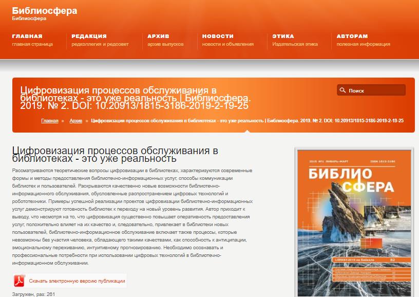 Рис. 2. Статья из журнала «Библиосфера» на платформе Elpub